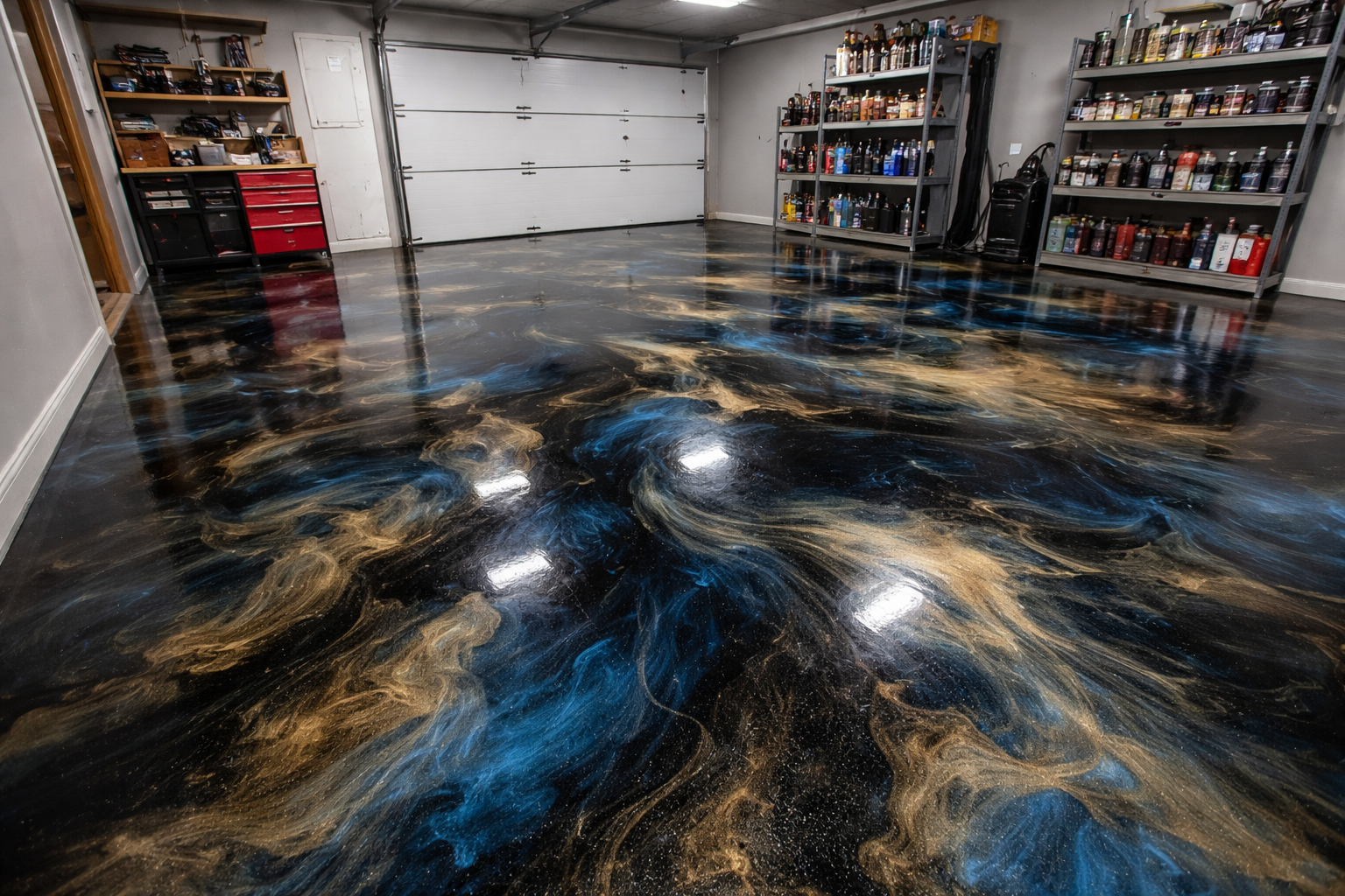 We specialize in decorative concrete, including epoxy flake, metallic epoxy, and overlays that mimic wood, stone, and patio finishes. Durable, low-maintenance, and professionally installed.